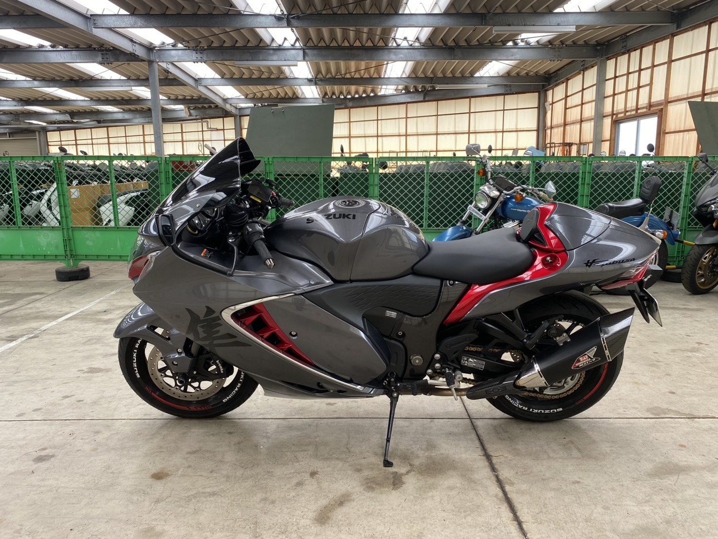 ハヤブサと最高の相性を誇るヨシムラ製スリップオンマフラーを装備。純正マフラーの有無に関わらず、その品質とブランド力をプラス査定の重要項目としてカウントしています。